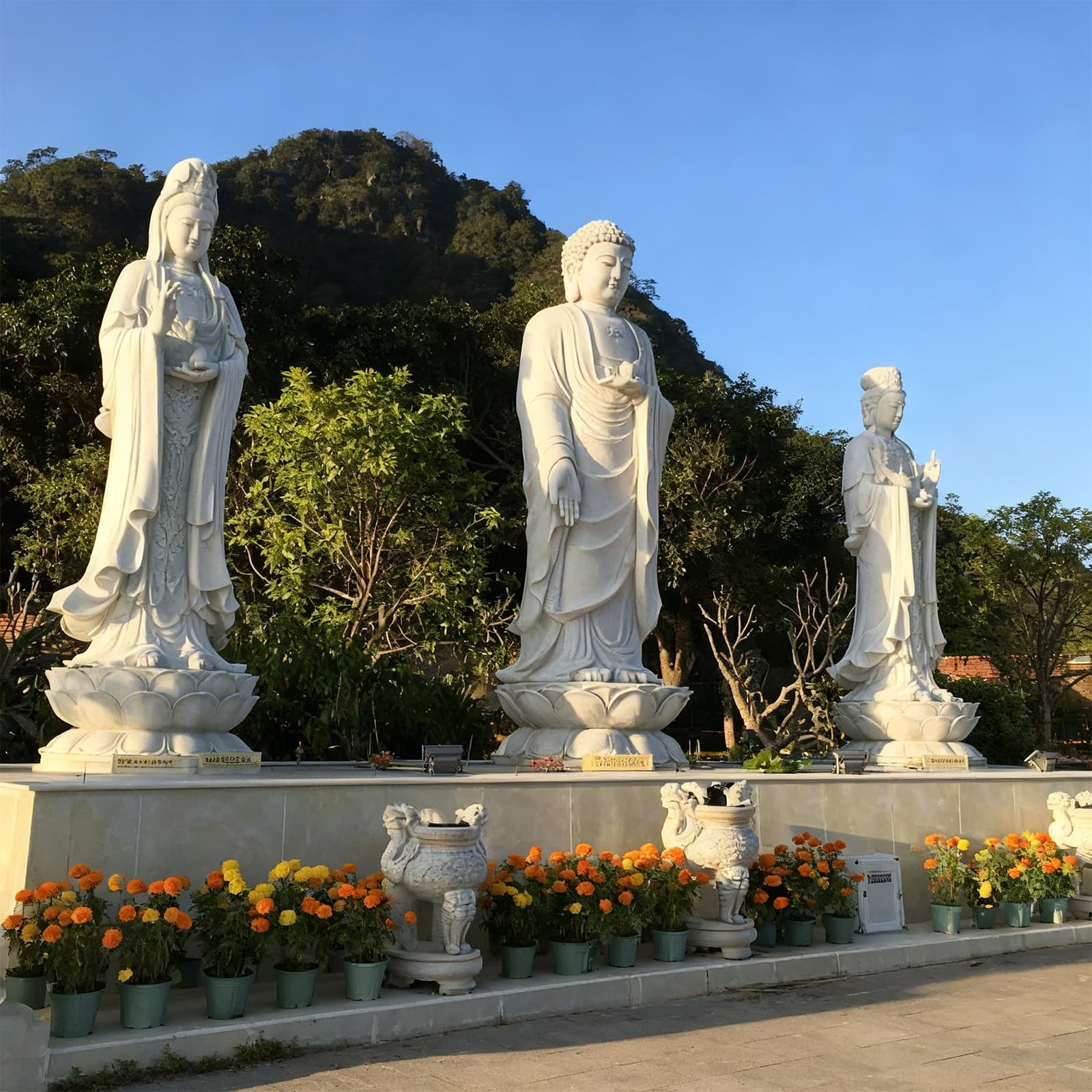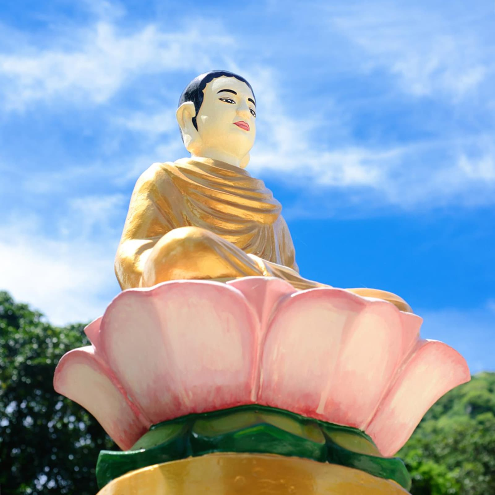 На вершине холма — огромная белая статуя сидящего Будды высотой около 24 метров. К ней ведёт лестница из 152 ступеней. Подъём несложный, а открывающийся вид на город и горы того стоит.