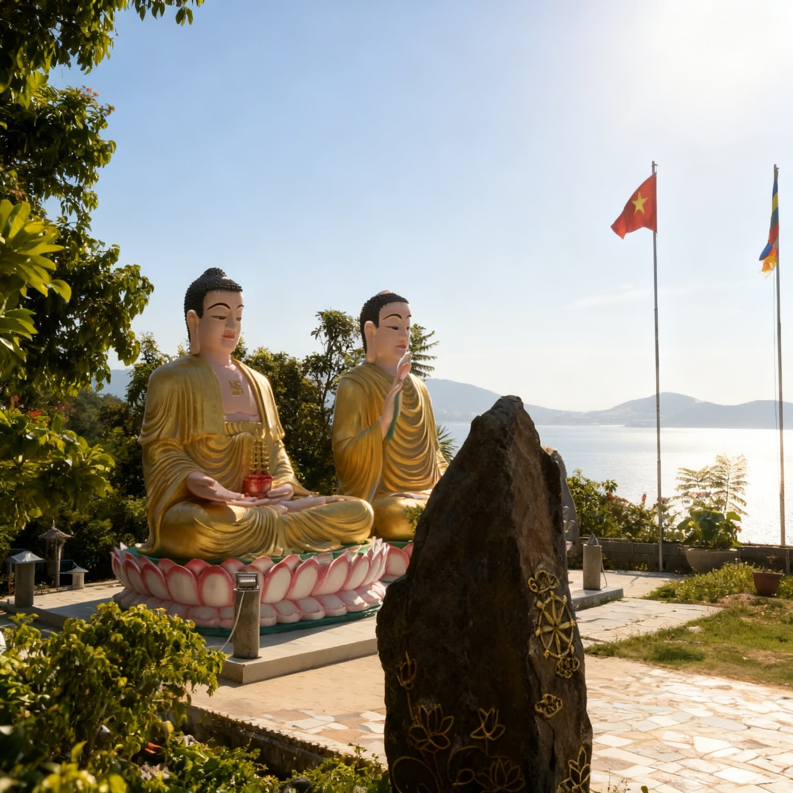 Пагода Тысячи Лиц, известная как Chùa Đa Bảo, — это уединённое буддийское место на склоне горы Ку Тьен, к северу от центра Нячанга. Отсюда открывается один из лучших панорамных видов на город, море и острова залива. Пагода не популярна среди массового туриста, но именно этим и ценна: здесь по-настоящему тихо, спокойно и красиво.