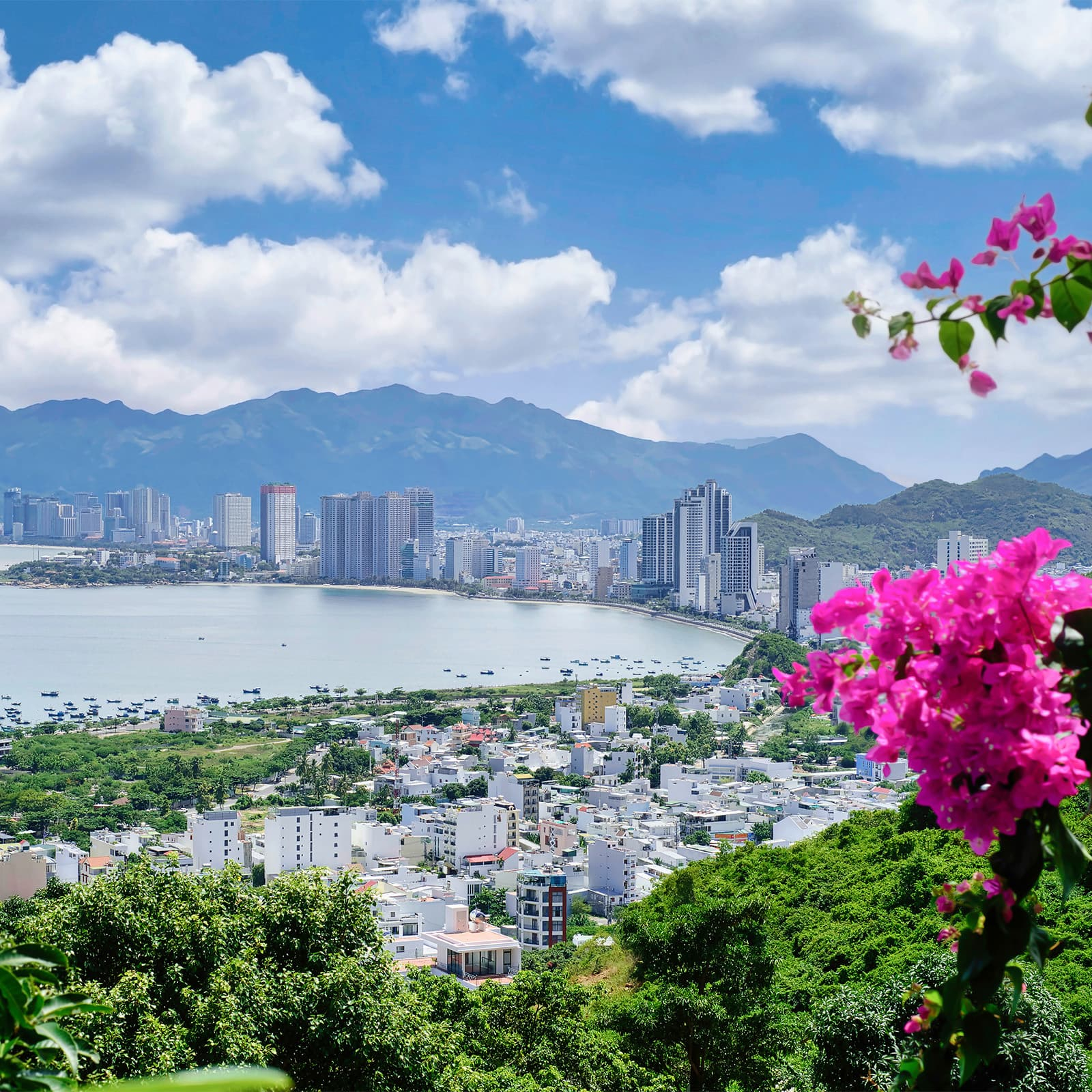 С вершины открывается панорамный вид на весь залив Нячанга, город, горы и острова. На закате горизонт окрашивается в мягкие розовые и оранжевые тона, а после захода солнца можно увидеть, как зажигаются огни набережной. Это одно из тех мест, где действительно замирает время.